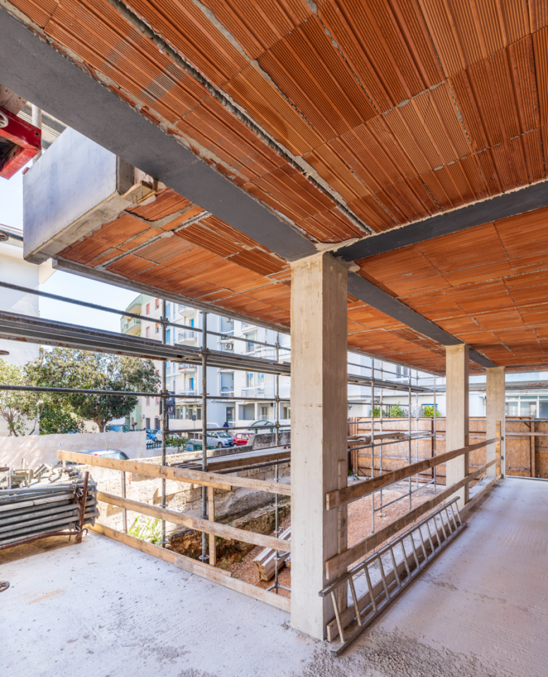 Si è scelto l’impiego di travi MTR® A (totalmente autoportanti) in abbinamento a lastre predalles con fondello in laterizio, un solaio ideale per le strutture ad uso civile. Questo solaio è particolarmente indicato per gli edifici residenziali in quanto consente di far passare gli impianti elettrici e facilita la fase di intonacatura.