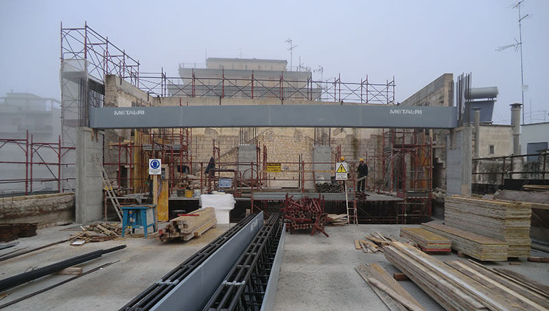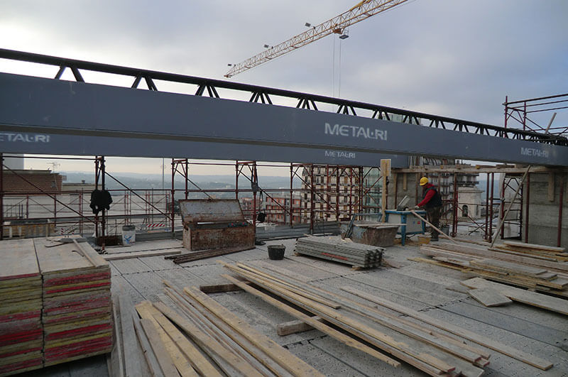 Gran parte degli orizzontamenti sono stati realizzati con Travi MTR® A , totalmente autoportanti in tutte le fasi costruttive, di luce pari a 12,5 m, in abbinamento a diverse tipologie di solai, in base alle varie esigenze costruttive.