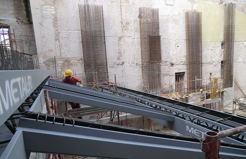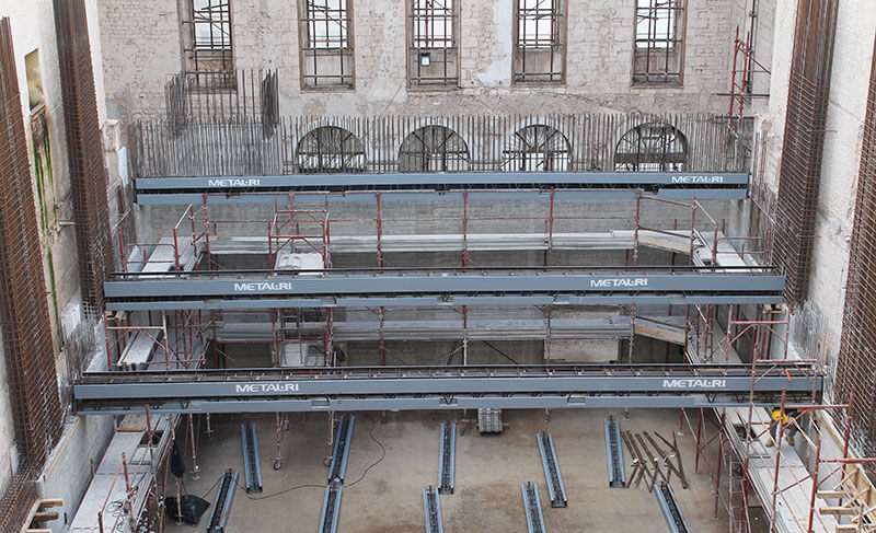 Il solaio della Sala Prove è stato realizzato con Travi MTR® A , sempre di luce netta pari a 12,5 m, in abbinamento ad un solaio laterocemento, con il vantaggio di eliminare tutti i casseri e utilizzare i puntelli solo per i solai.