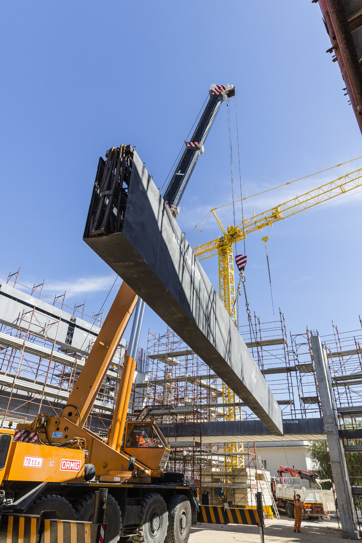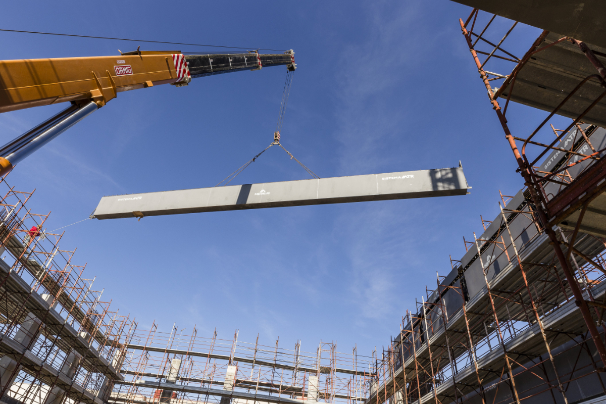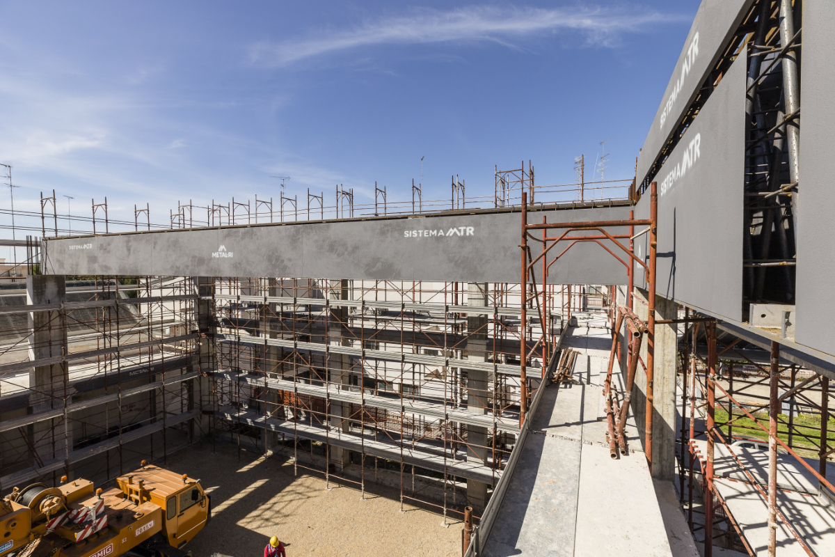 La copertura ha previsto il posizionamento di travi tralicciate MTR® A di elevata lunghezza, raggiungendo quasi i 22 metri. Con la soluzione MTR® A, totalmente autoportante con funzione di armatura e cassero in un solo elemento, la trave principale porta altre MTR® A secondarie: una prima trave lunga 21,5 metri e alta 2 metri a sostegno di tre travi lunghe 20 metri e altezza di 1,5 metri ciascuna.
