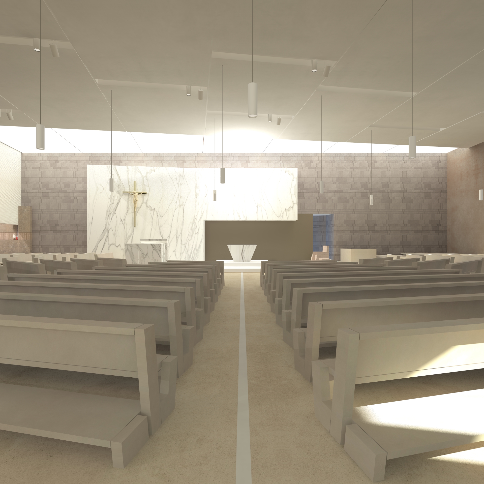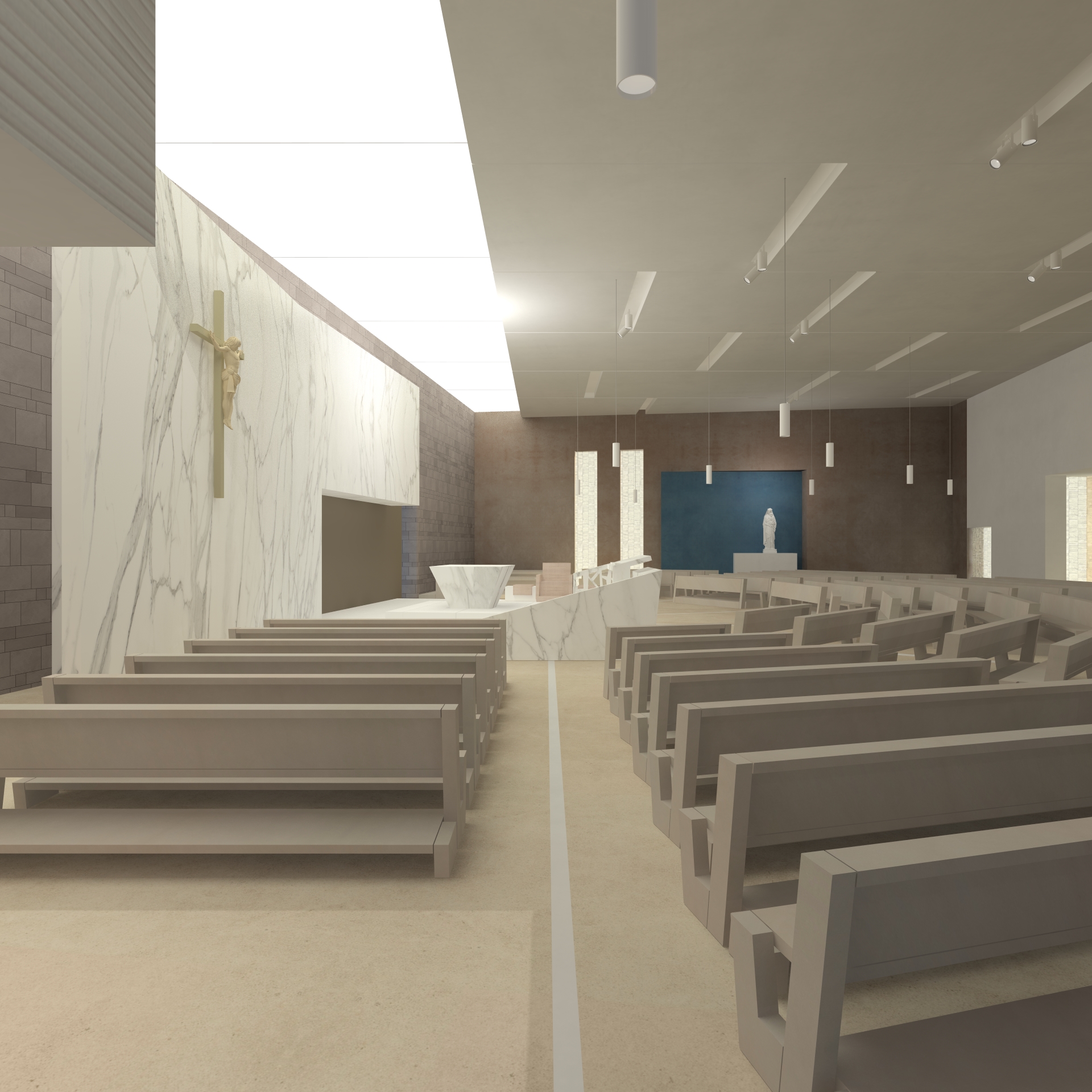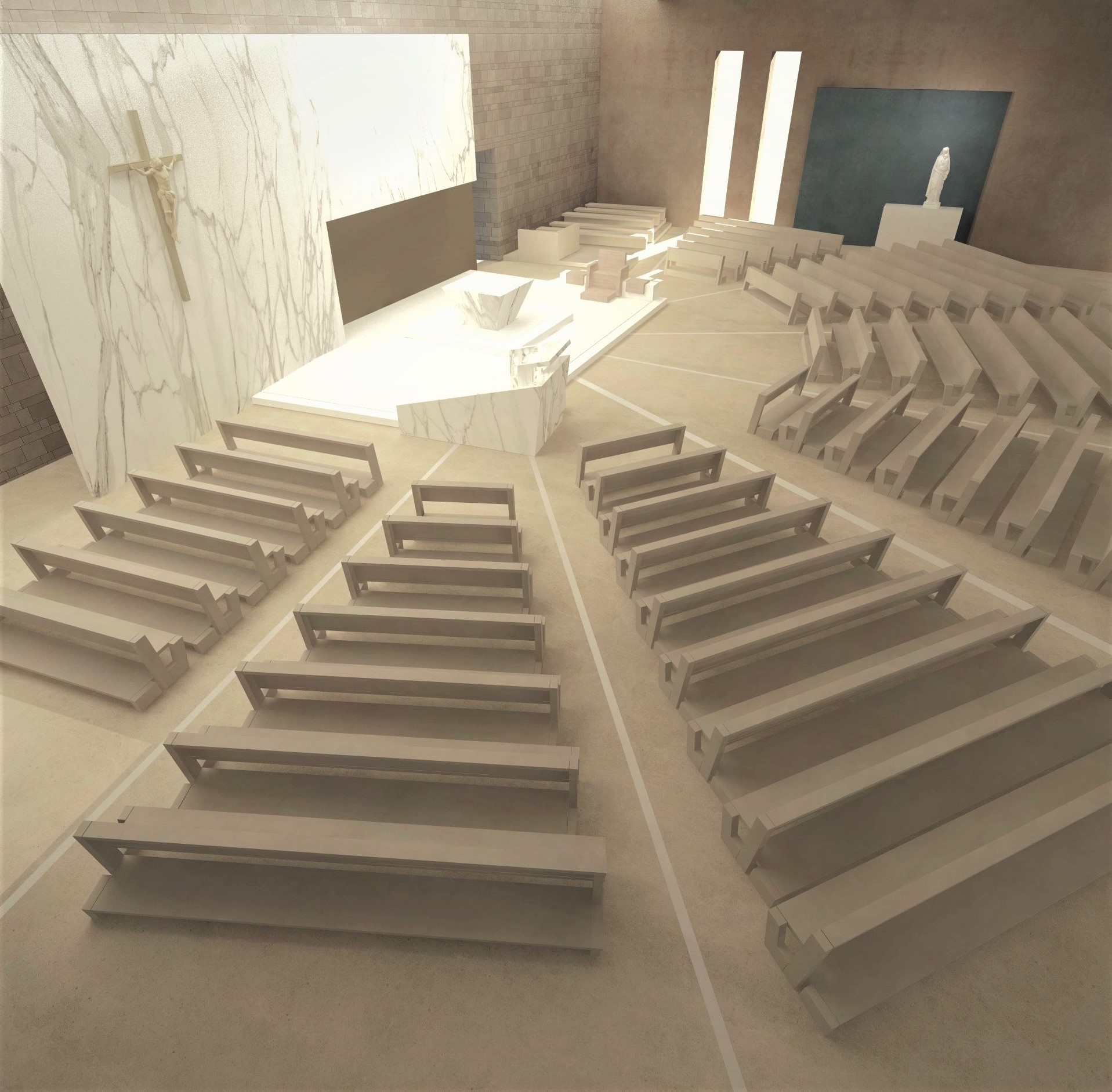 Il nuovo luogo di culto della misura di circa 1200 mq, comprende la cappella feriale nella quale è posto il tabernacolo, la cappella della Riconciliazione e la sagrestia che unisce la moderna costruzione con la struttura parrocchiale già esistente.